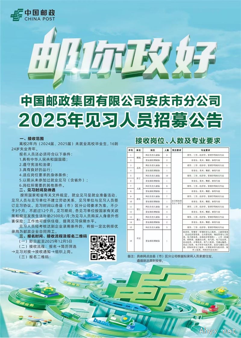 安庆邮政分公司2025年见**人员招募公告